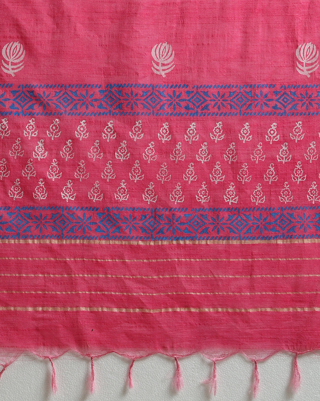 Katan Silk Gorgeous Suits Magenta Blockprinted
