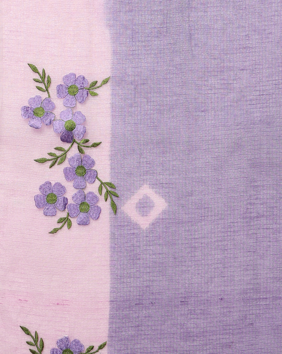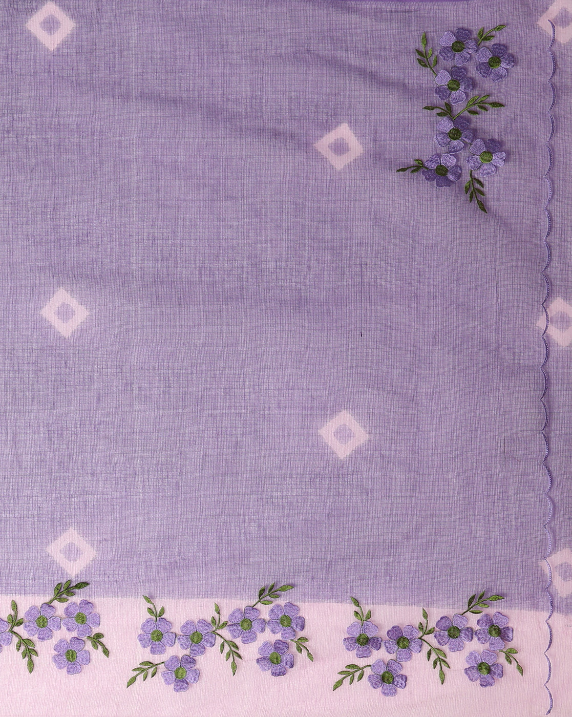 Bold Bandhej Kota Doria Embroidery Purple Saree Handdyed
