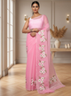 The saree features intricate embroidery work, which could include traditional Indian hand embroidery techniques such as Zardozi, Gota Patti, or Resham work. The embroidery enhances the beauty and richness of the saree.