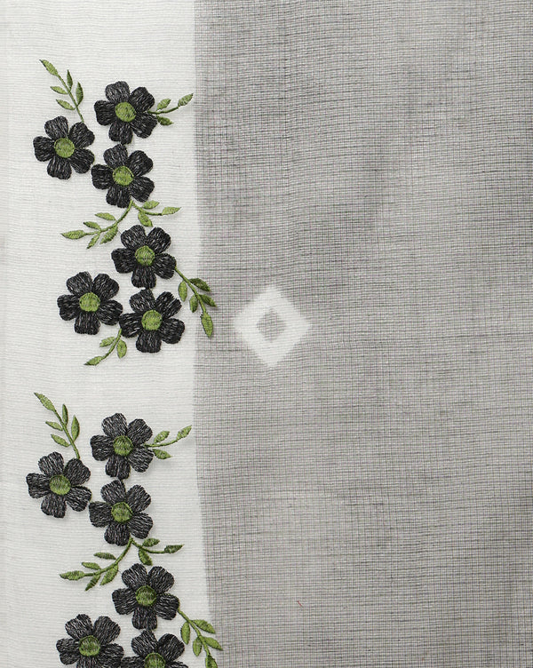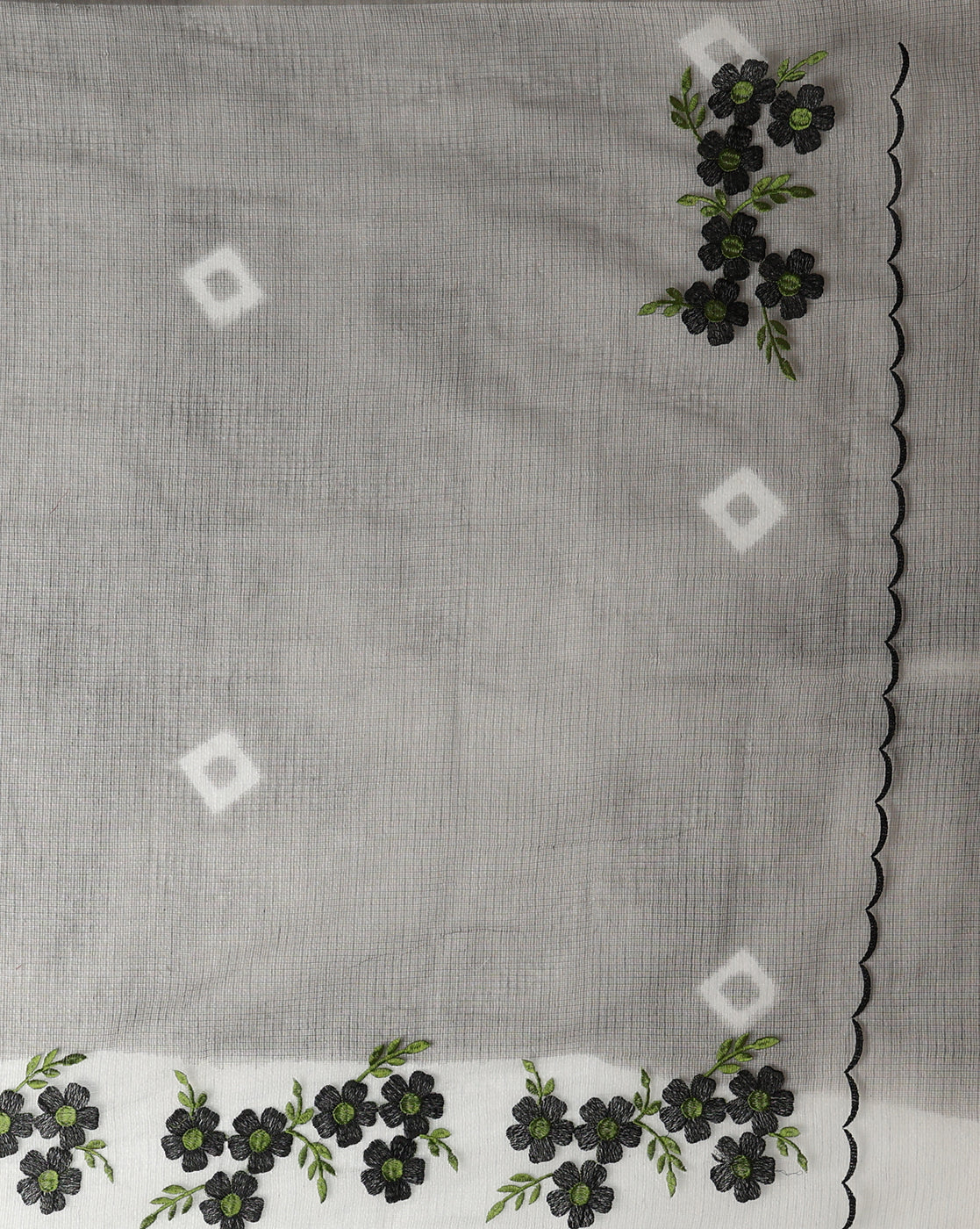 Vibrant Bandhej Kota Doria Embroidery Black Saree Handdyed