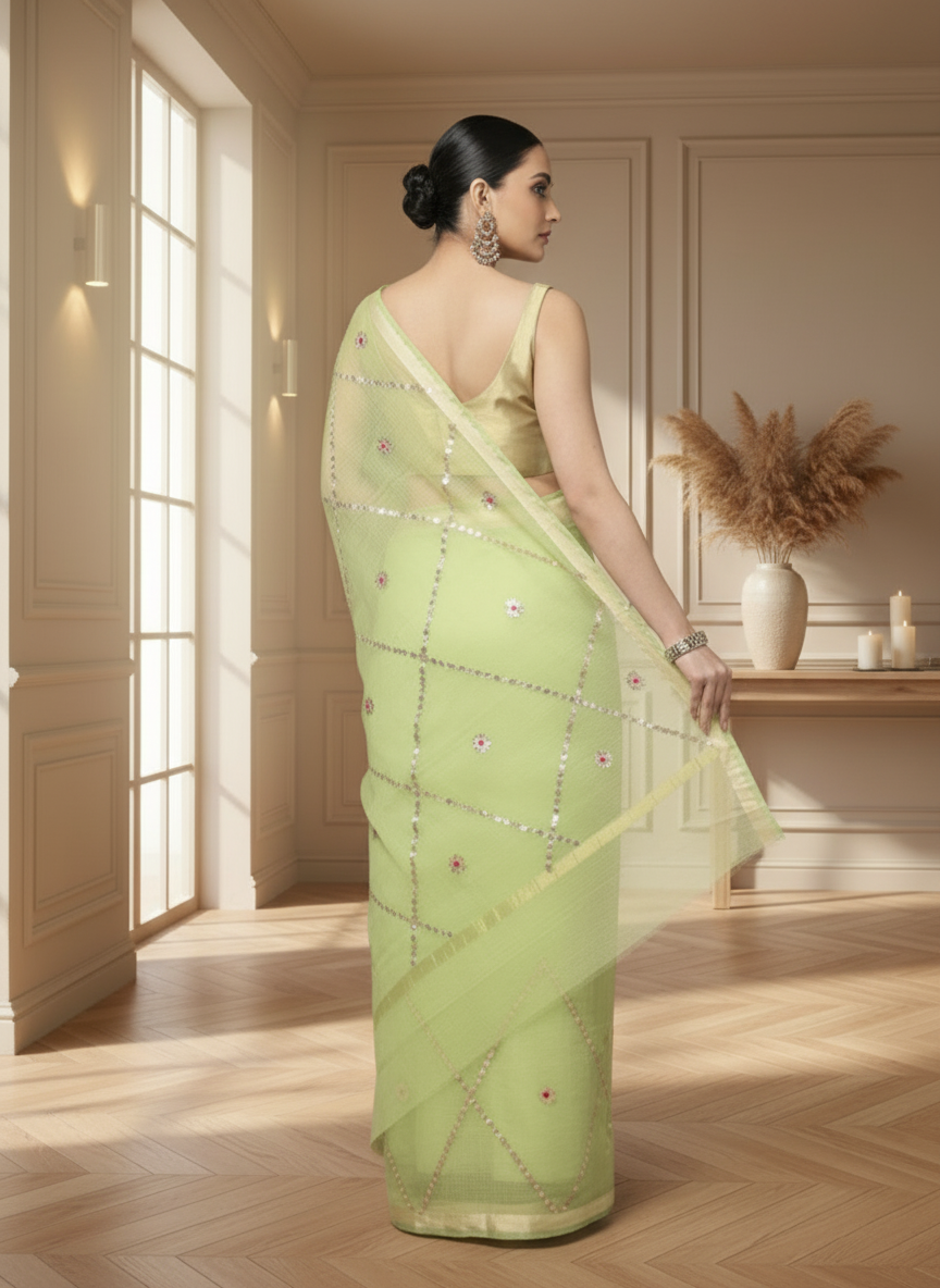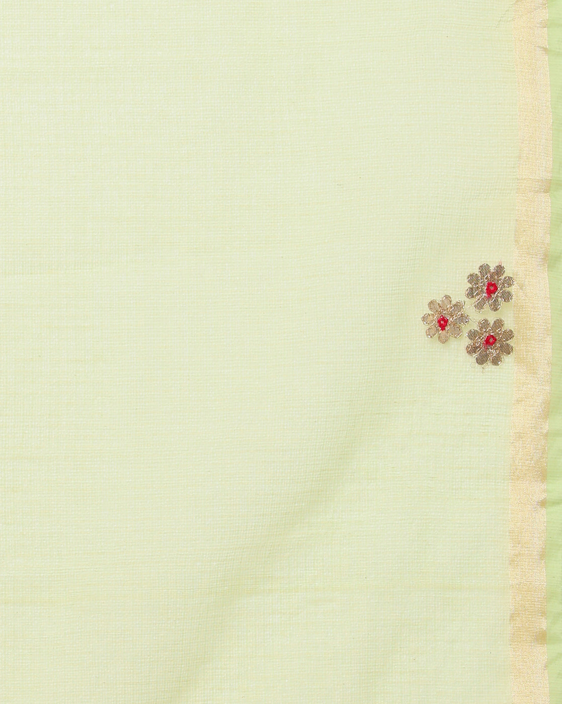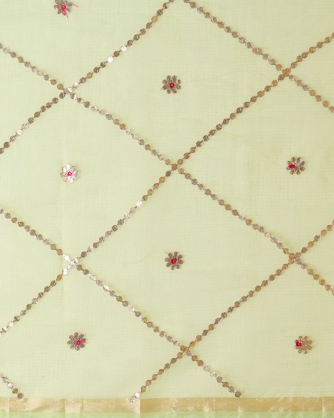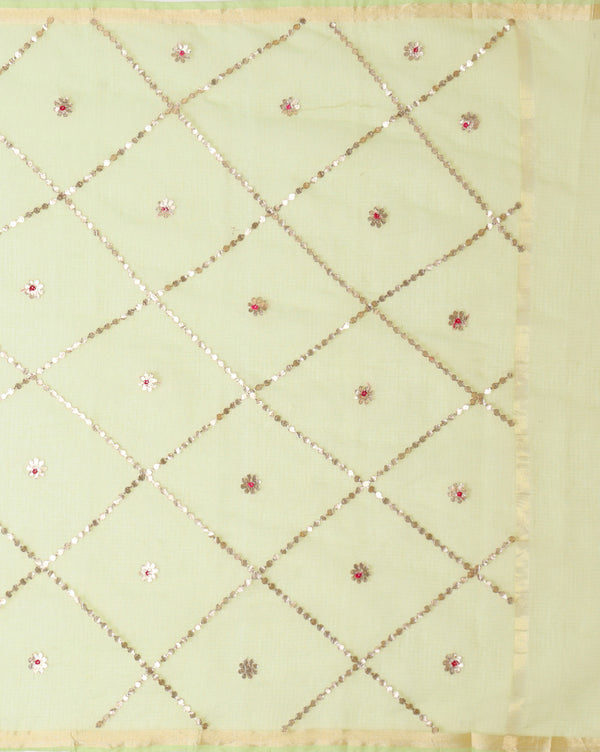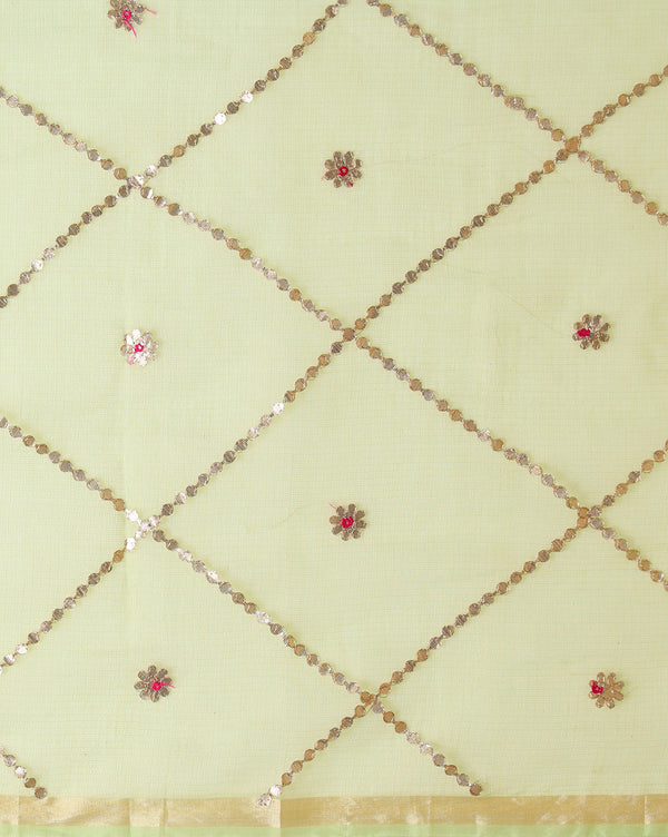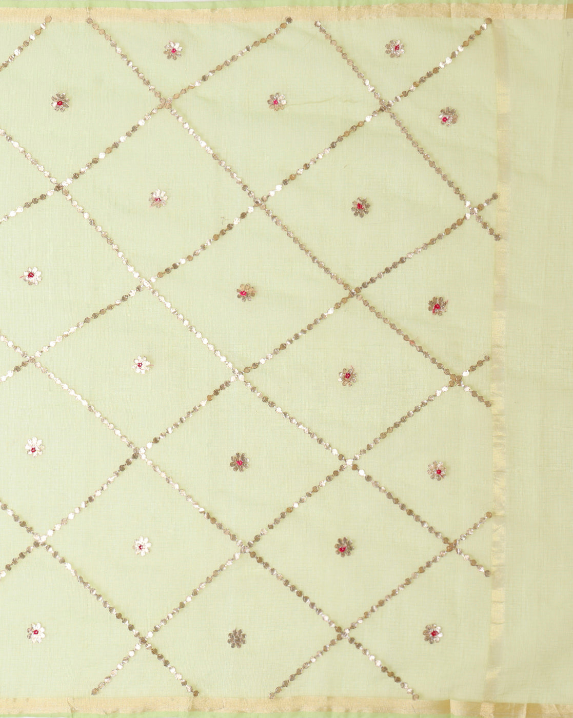Pankhudi Gota Patti Lime Green Kota Cotton Saree