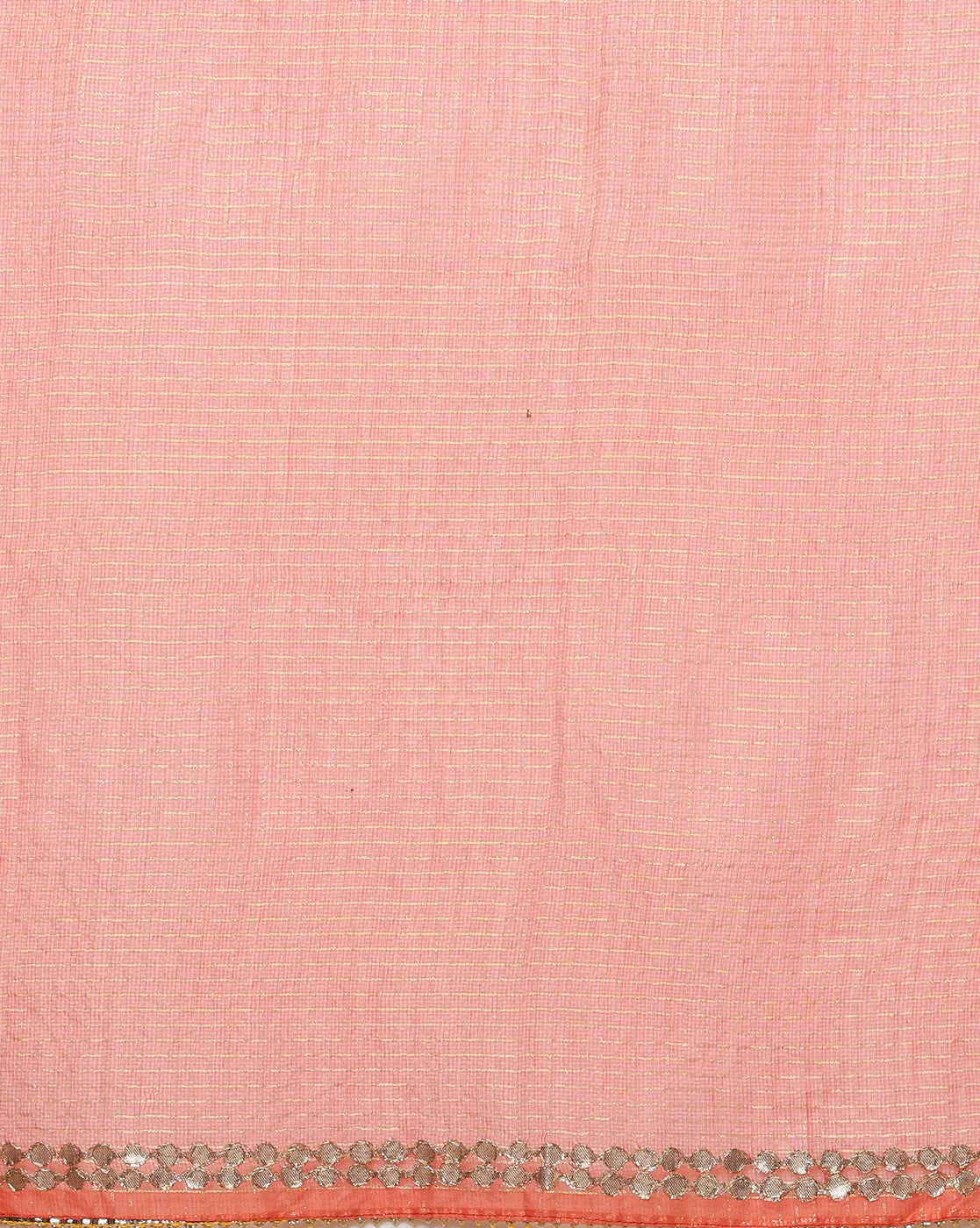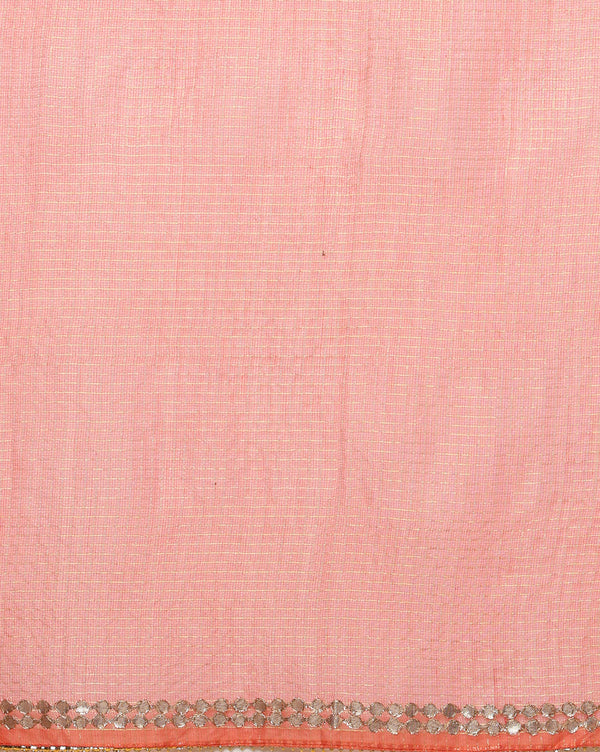 Pankhudi Jugnu Checks Kota Cotton Gota Patti Peach Saree