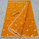 Jugnu Checks Gota Patti Work is a unique Rajasthani embroidery style that combines the shimmering beauty of Gota Patti with a structured checkered pattern. The design features intricate gold or silver gota work arranged in a grid-like formation, resembling twinkling fireflies ("Jugnu"). This elegant craft is often used in sarees, lehengas, and dupattas for festive and bridal wear.