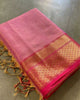 Step into glamour with our Handloom Maheshwari Silk Tissue Saree. Adorned with delicate tissue wo... Read more