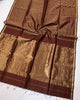 The tissue silk in this saree is distinguished by its lightweight and sheer texture, which creates a delicate, translucent appearance. This blend of silk with a gossamer-like tissue adds a graceful flow and subtle shine to the saree, enhancing its overall elegance.