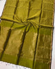 Gleaming Handloom Maheshwari Dark Green Tissue Silk Saree