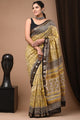 Nirmal Pure Khadi Cotton Sequin Saree Olive Green