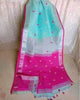Step into sophistication with our Handcrafted Pure Linen Jacquard Saree. Intricately woven with Jacquard patterns on fine linen fabric, each saree exudes elegance and grace, perfect for formal events and social gatherings.