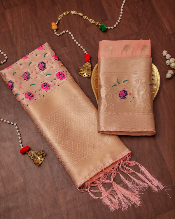 Noor-e-Banaras Brocade Weaving Lichi Silk Suit Peach