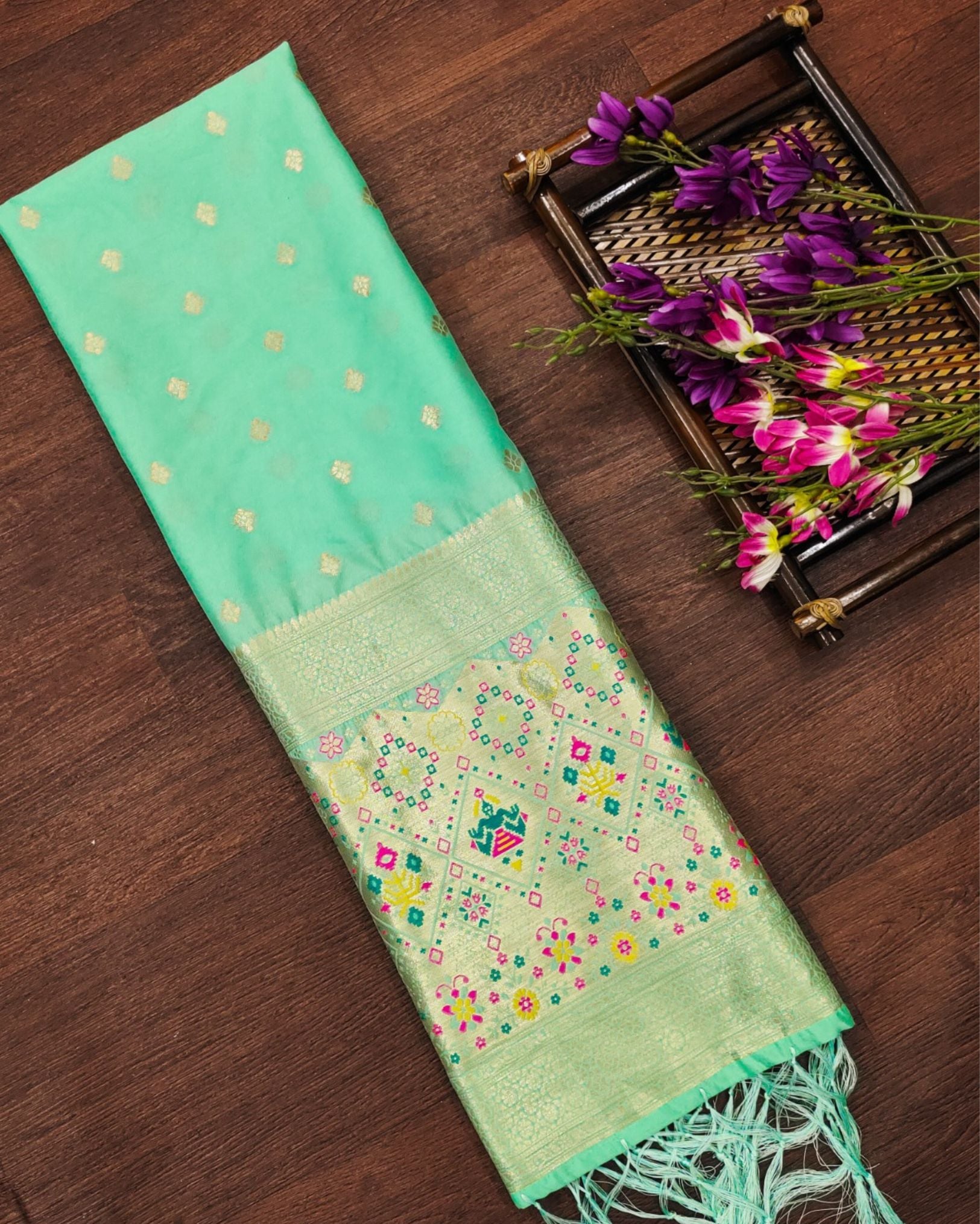 Noor-e-Banaras Buti Brocade Silk Dupatta Mint Green