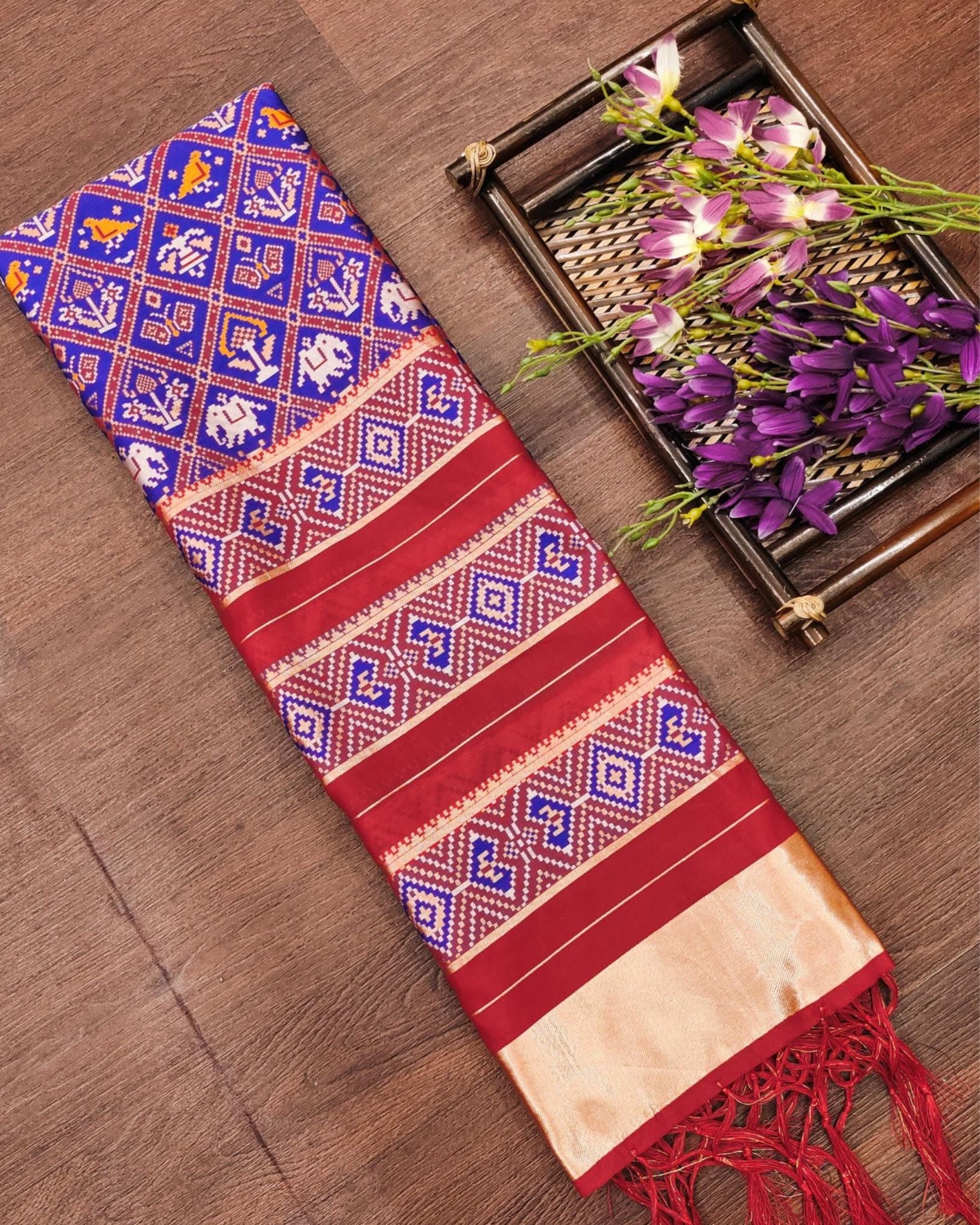 Add regal charm to your ethnic look with our Banarasi Lichi Silk Dupatta featuring intricate Patola weaving. Luxuriously soft, vibrant, and traditional—perfect for weddings, festivals, or special occasions.