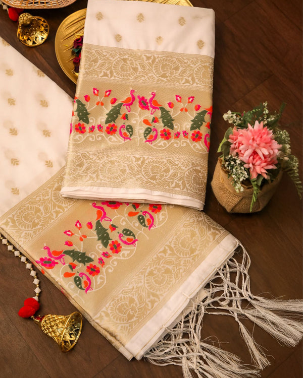 Noor-e-Banaras Zari Brocade Cream Silk Suit