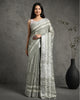 Luminous Silk Linen Embroidered Off White Saree