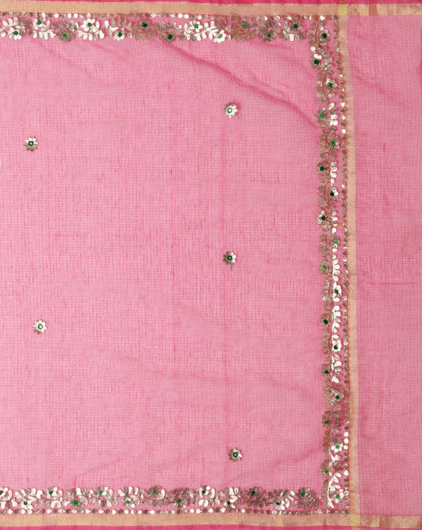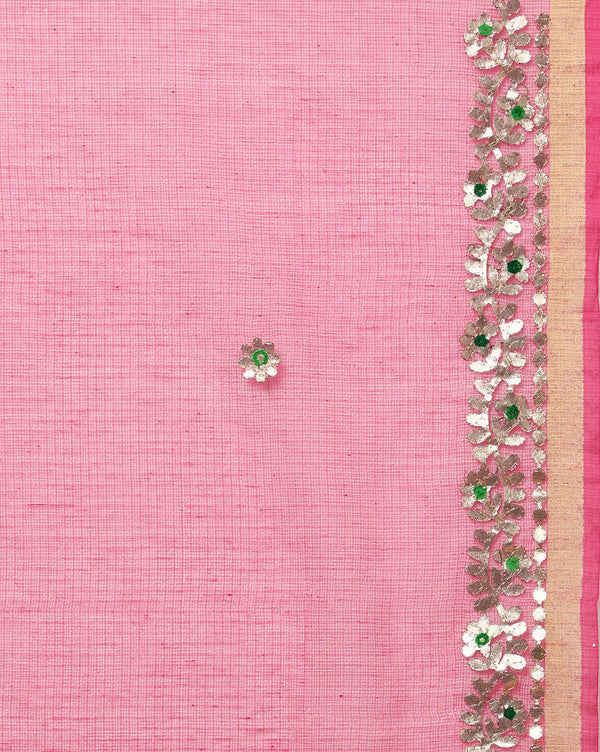 Gilded Grace Kota Cotton Gota Patti Dark Pink Saree