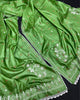 Nirmal Pure Khadi Cotton Sequin Saree Olive Green