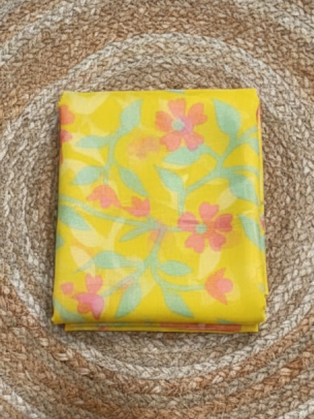 **Pure Muslin Silk** is a lightweight fabric that blends the softness of muslin with the natural sheen of silk. You get an airy feel, smooth texture, and graceful drape, making it ideal for elegant sarees and refined ethnic wear.