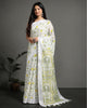 Surreal Pure Linen Saree Hand Embroidered White & Blue