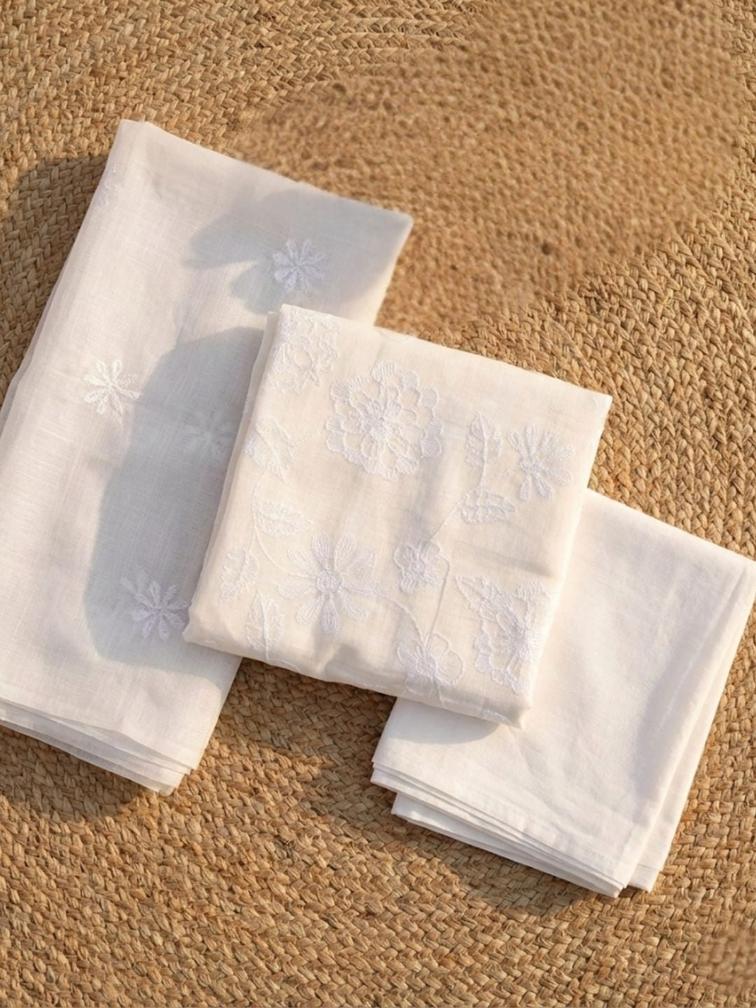 Kashidakari Kota Doria Soft White Embroidered Suit