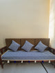 Cotton sofa throw with matching cushion cover crafted in handloom jacquard weaving. Soft, durable, and stylish, perfect for enhancing living spaces with texture, comfort, and traditional woven appeal. 3-Seater Set: Includes 1 piece three-seater sofa throw + 3 cushion covers. 5-Seater Set: Includes 1 piece three-seater sofa throw + 2 single-seater sofa throws (3+1+1) + 5 cushion covers. Measurements: 3 Seater Size - 28x71 Inch, 1 Seater Size - 28x30 Inch, Cushion Cover - 16x16 Inch Work: Handwoven Jaquard Fabric: Cotton Wash Care: Dry Clean Preferred or Gentle Handwash with Mild detergents. Wash separately. Dry in Shades. Disclaimer: This product has been made by hand and may have slight irregularities that are a natural outcome of the human involvement in the process *Photo credit goes to weaver who has taken the photo themselves. Finding the same patches is extremely difficult. As these are handcrafted products, overall color of the product will remain similar but patches may vary as that's what makes every piece unique. Customization available at an additional cost.