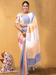Luminous Silk Linen Embroidered Off White Saree