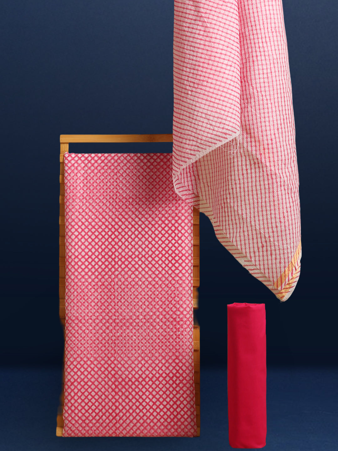 Celebrate tradition with our Handcrafted Kota Doria Lehariya Suit. Featuring vibrant Lehariya patterns on lightweight Kota Doria fabric, each suit exudes festive charm and elegance, perfect for cultural festivities and celebrations.