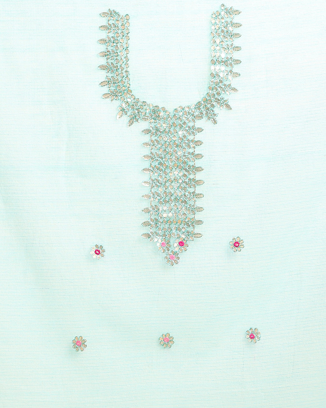 Glimmering Kota Doria Gota Patti Soft Green Suit