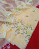 - Embroidery on the suit material involves decorative hand or machine-stitched patterns using silk, cotton, or zari threads. These designs can include floral motifs, paisleys, geometric patterns, or intricate traditional Indian artistry.