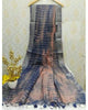 - This saree is crafted from pure linen, a natural fabric known for its durability, breathability, and luxurious texture. The check design adds a classic touch to the saree, enhancing its elegance and charm.