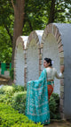Ethereal Chanderi Silk Hand Applique Green Saree