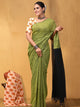 Nirmal Pure Khadi Cotton Sequin Saree Olive Green