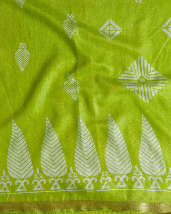 Nargis Ki Roshini Katan Silk Blockprint Light Green Saree