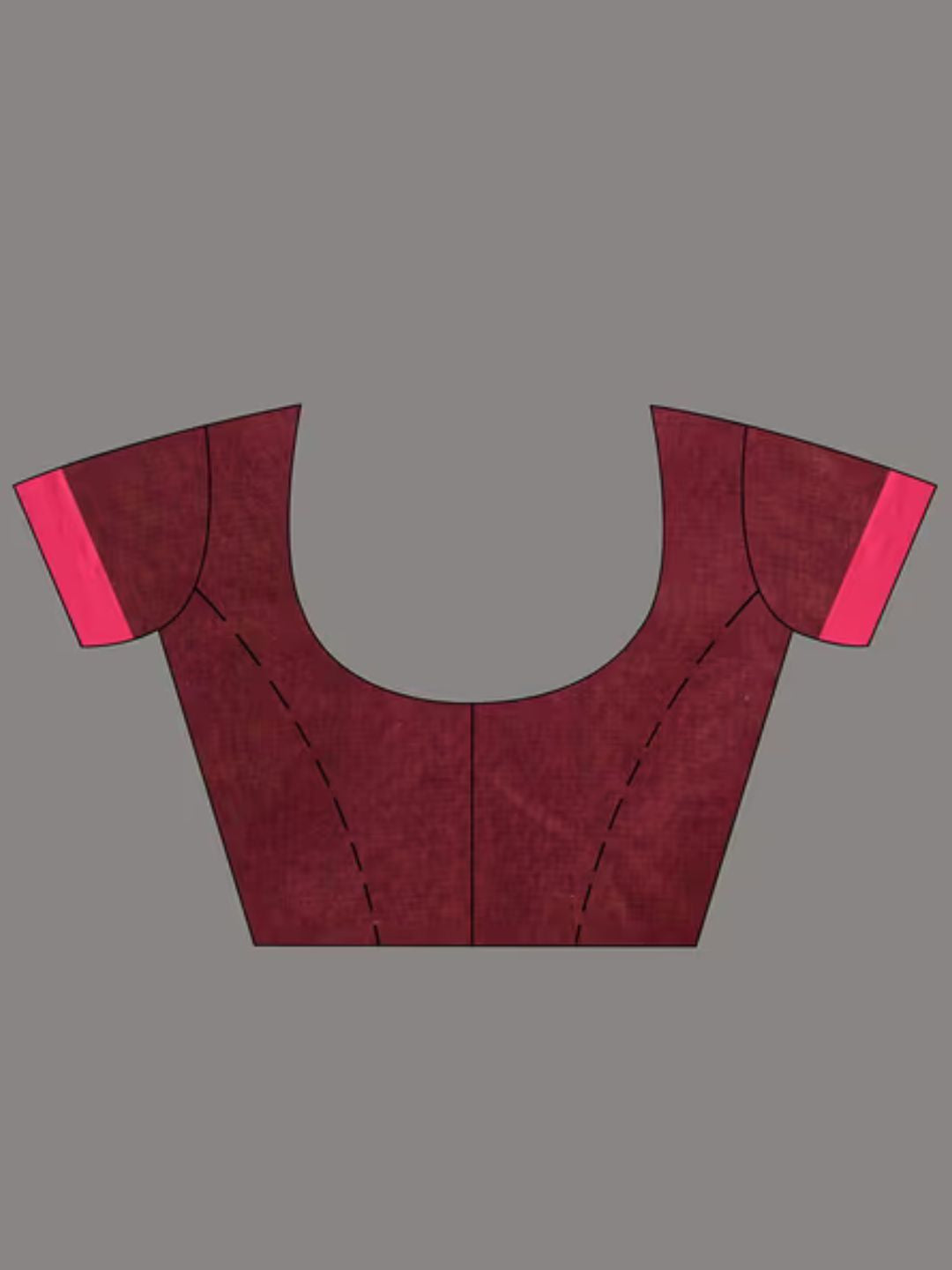 Pure handloom khadi cotton saree contrast blouse adorned with delicate sequin work. Soft, breathable, and lightweight - perfect for festive occasions, cultural gatherings, or adding subtle sparkle to your everyday style.