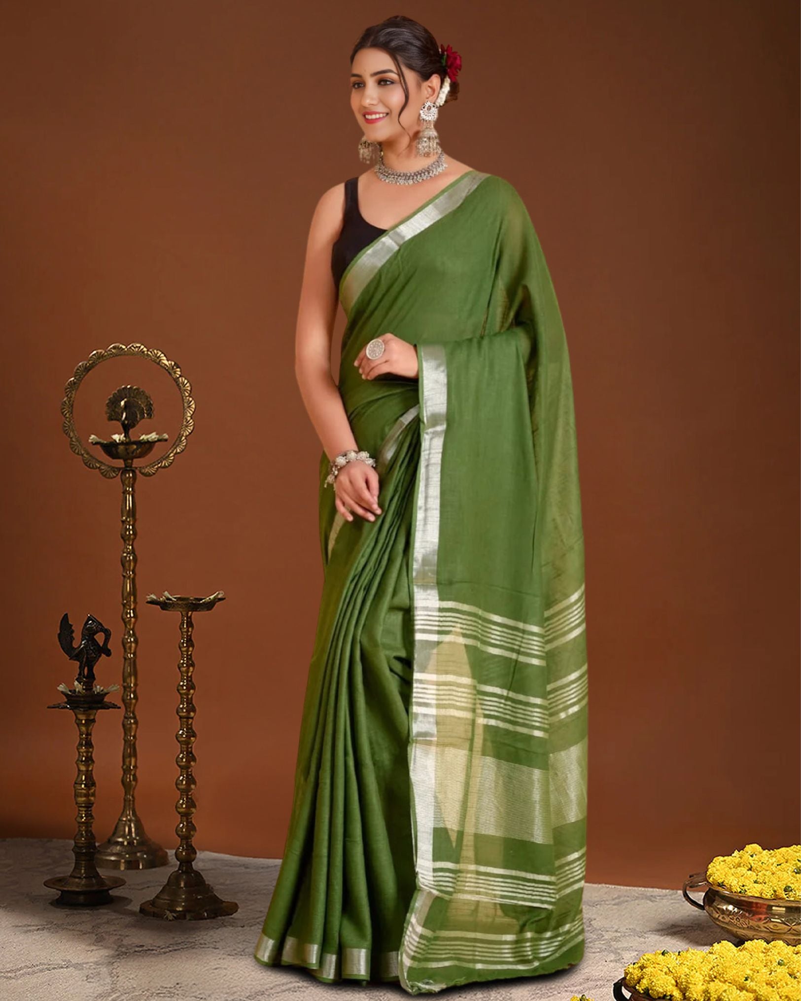 Noor-e-Linen Hand Dyed Olive Green Saree