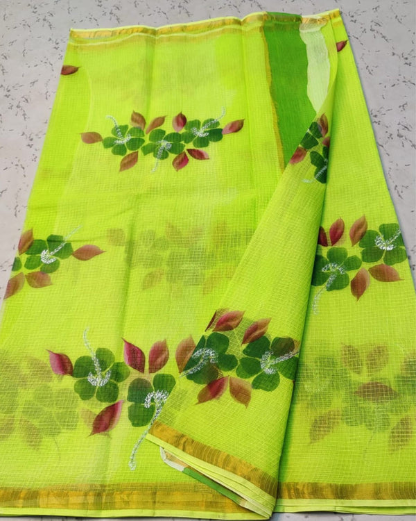 Qalamon Ke Nishan Kota Cotton Lime Green Saree