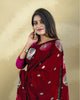 This saree is woven on traditional handlooms by skilled Banarasi weavers. The semi silk threads are dyed and woven with zari to create rich, raised brocade motifs. Each saree can take days to weeks to complete, reflecting the craftsmanship of generations.