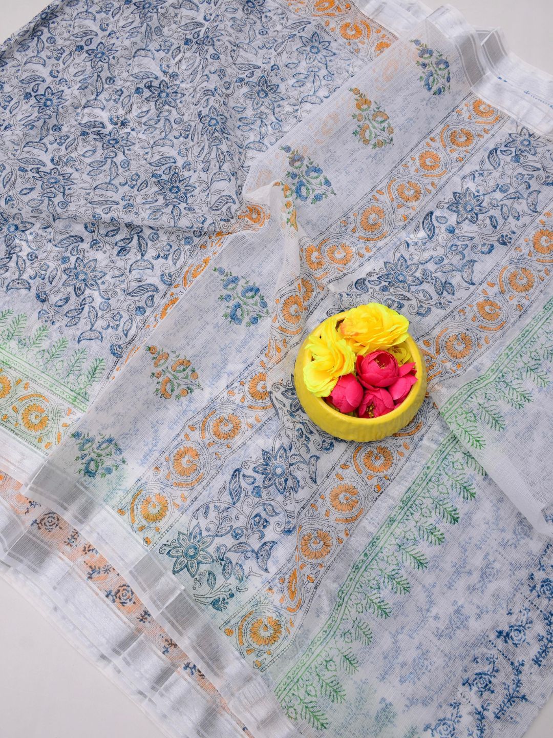 3. How is the Kota Doria Hand Block Print Saree handcrafted?