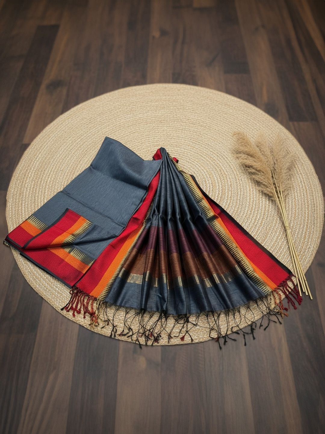 Zari Sutra Maheshwari Silk Charcoal Gray