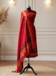 A Maheshwari Silk Zari Weaving Suit is an elegant ethnic ensemble crafted from fine Maheshwari silk, featuring intricate zari weaving patterns. Known for its lightweight texture, graceful drape, and subtle sheen, this suit is perfect for festive, wedding, and special occasions.