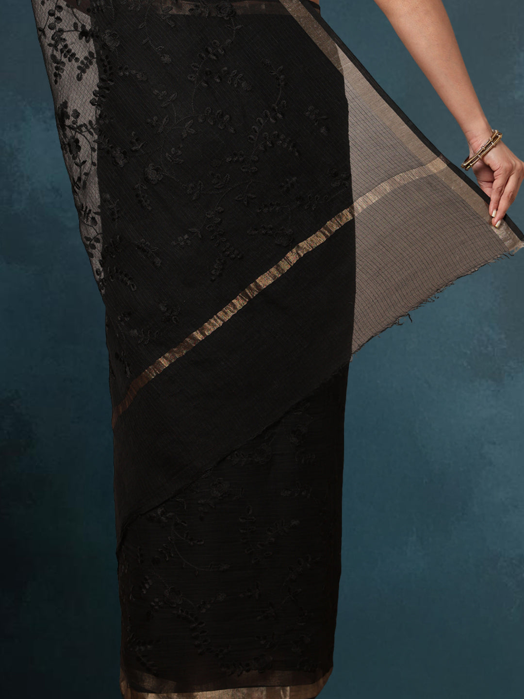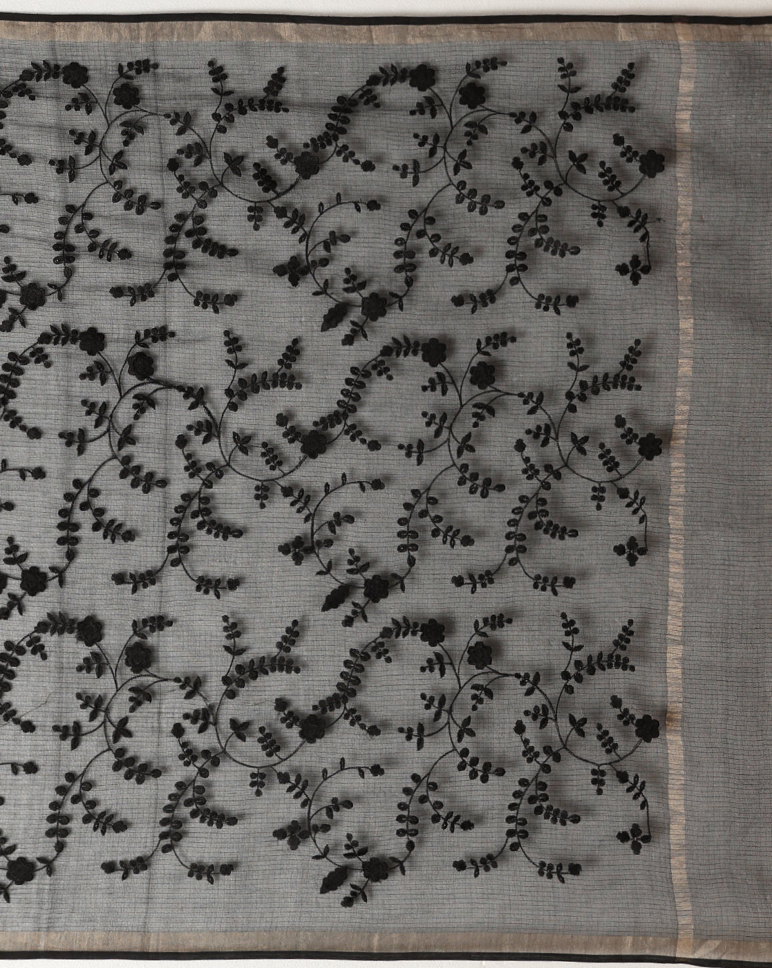 Pure Cotton Kota Doria Saree Black Jaal Embroidery