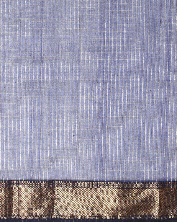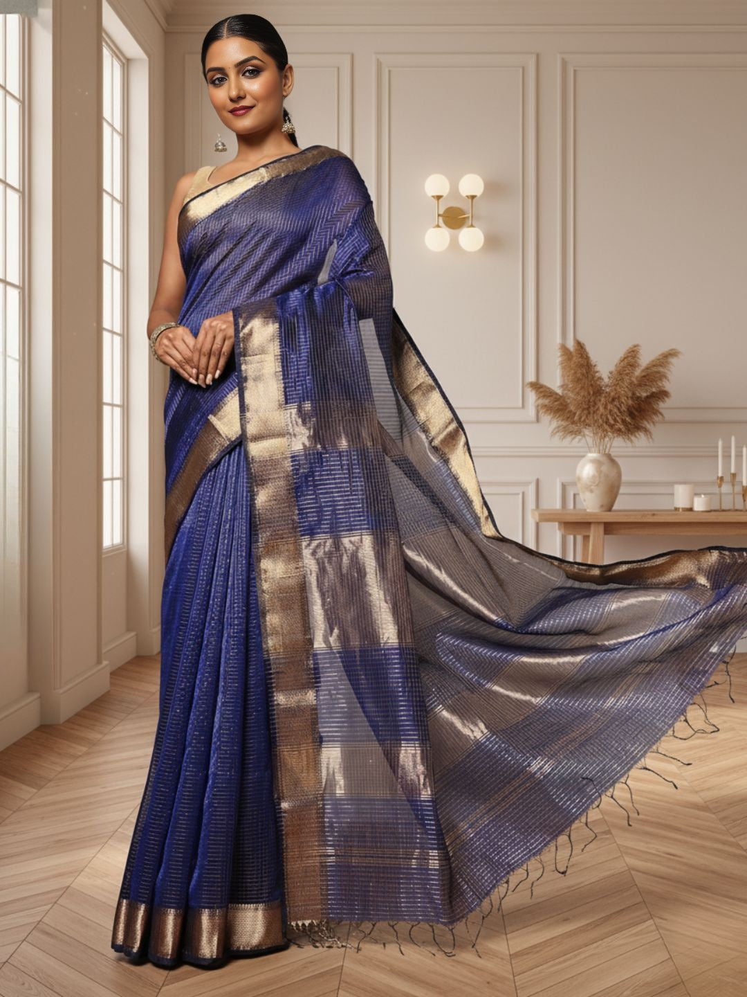Poised Maheshwari Pure Silk Check Body Indigo Saree