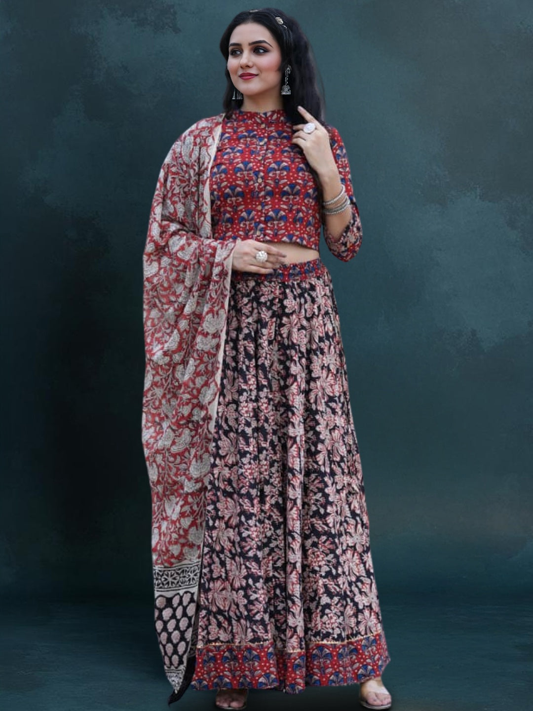Festive Fusion Lehanga Choli Red & Black Blockprinted