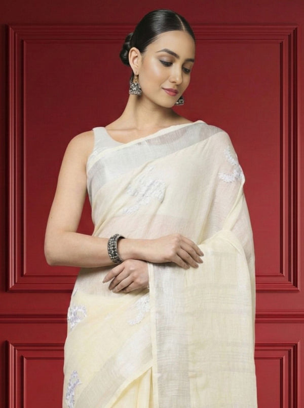 Best Selling Products, Diwali Sale, Independence Day Sale, Linen And Cotton Sarees, Linen Sarees, New Arrivals, Newest Products, Onam Oorja, Pure Linen Embroidered Handloom Saree, Pure Linen Embroidery Sarees, Pure Linen Sarees, Reception, Republic Day Collection, Same Day Bangalore Delivery, Sarees, Sutra, Valentines Edit White, Wedding Collections, Women's Day Sale