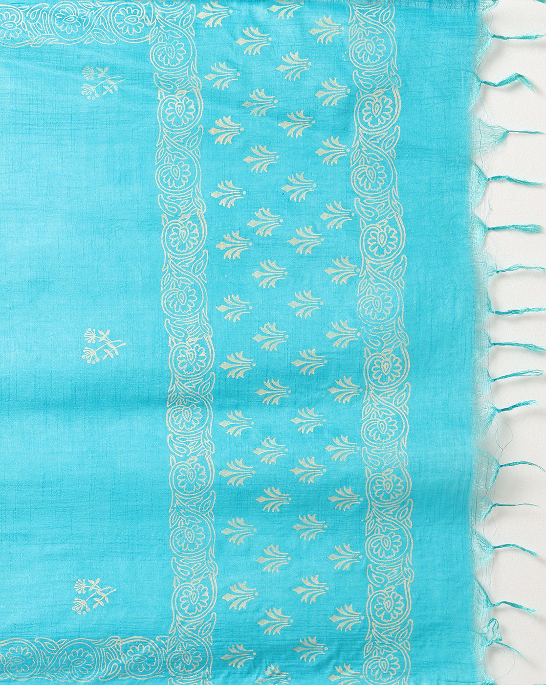 Nirmal Pure Khadi Cotton Sequin Saree Blue
