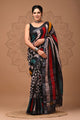 Lustrous Maheshwari Pure Silk Black & Indigo Blockprint Saree (LAST PIECE)