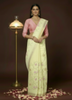 Luminous Silk Linen Embroidered Off White Saree