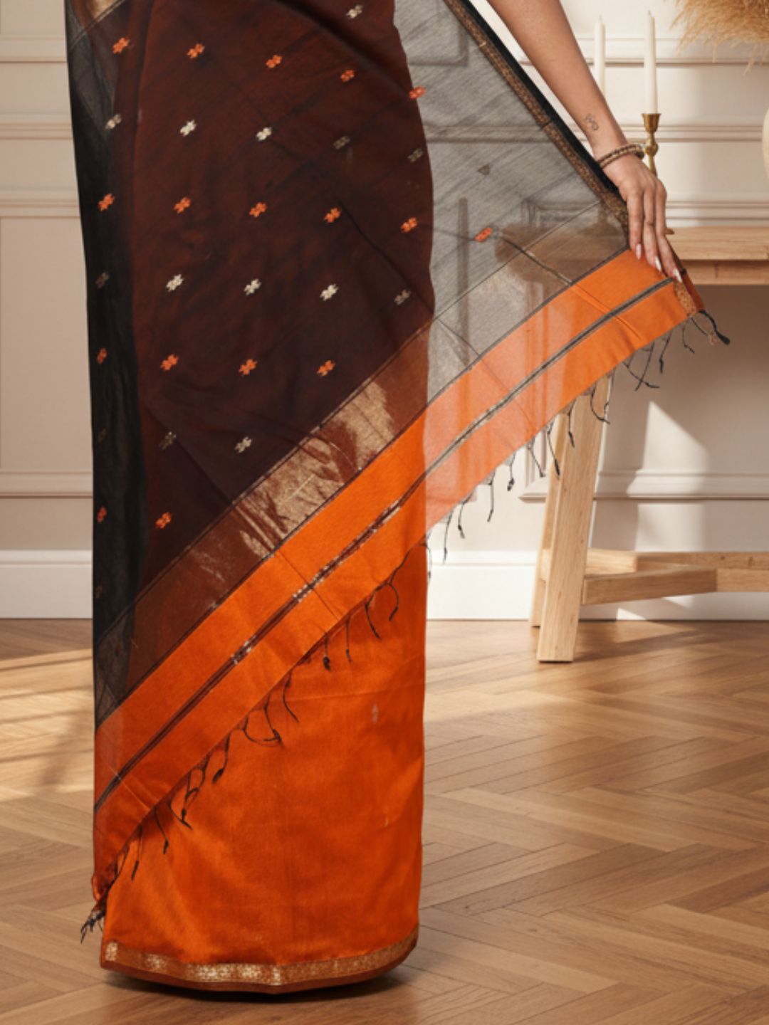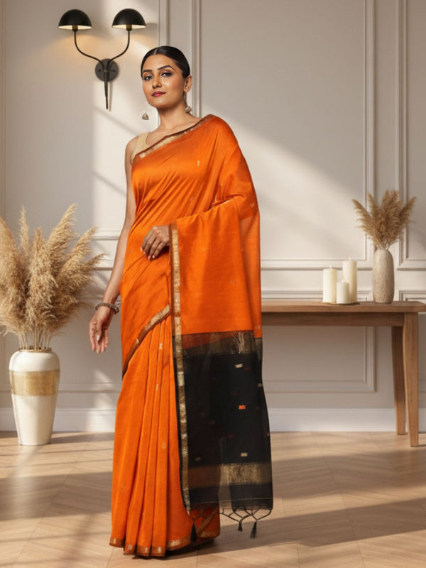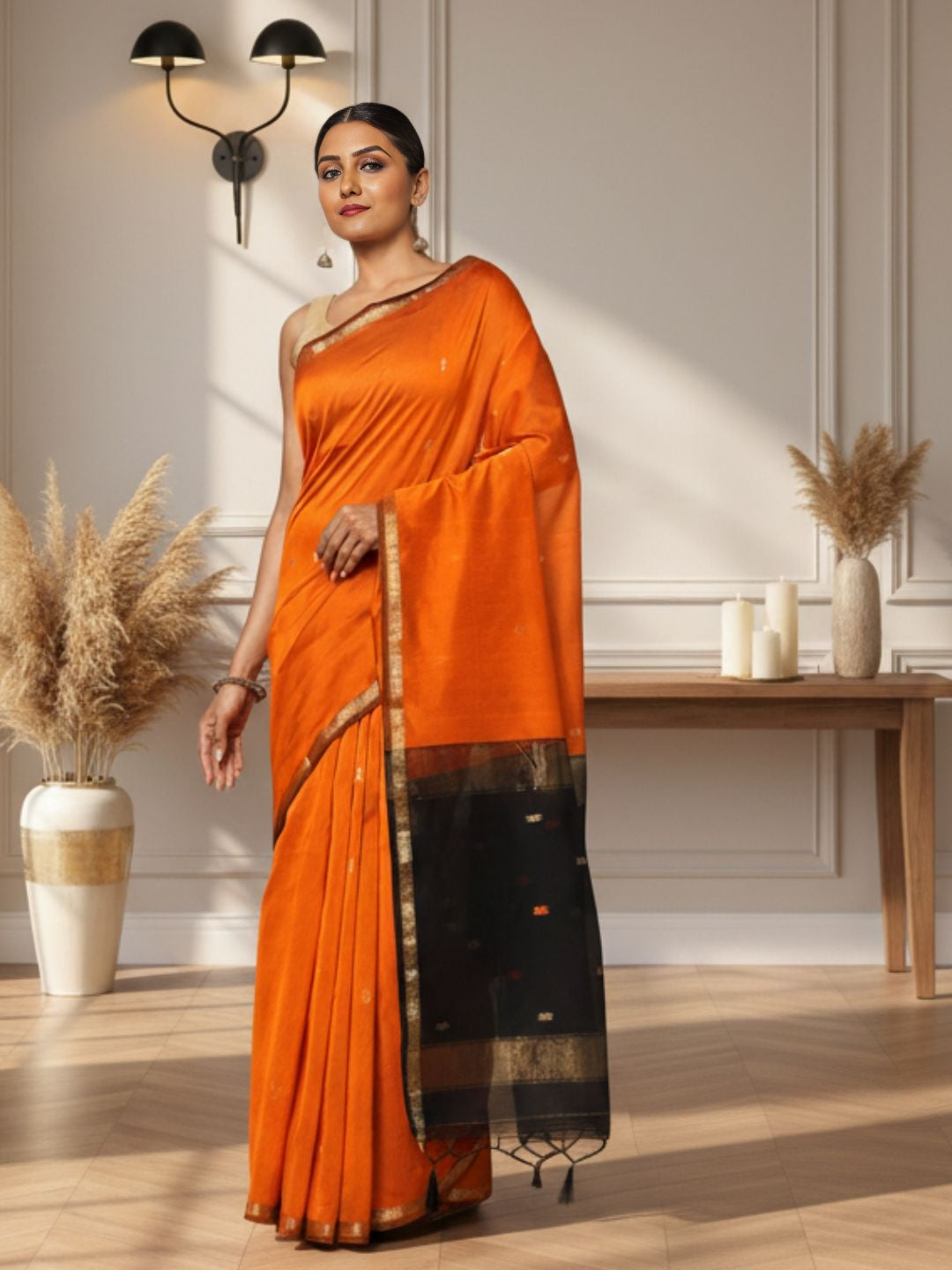 Poised Pure Maheshwari Silk Handloom Saree Orange & Brown
