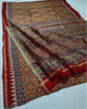 Elegant Chanderi Silk Saree featuring traditional Ajrakh Printing. Lightweight, breathable, and perfect for festive occasions or cultural events. A timeless blend of heritage craftsmanship and contemporary charm for your wardrobe.