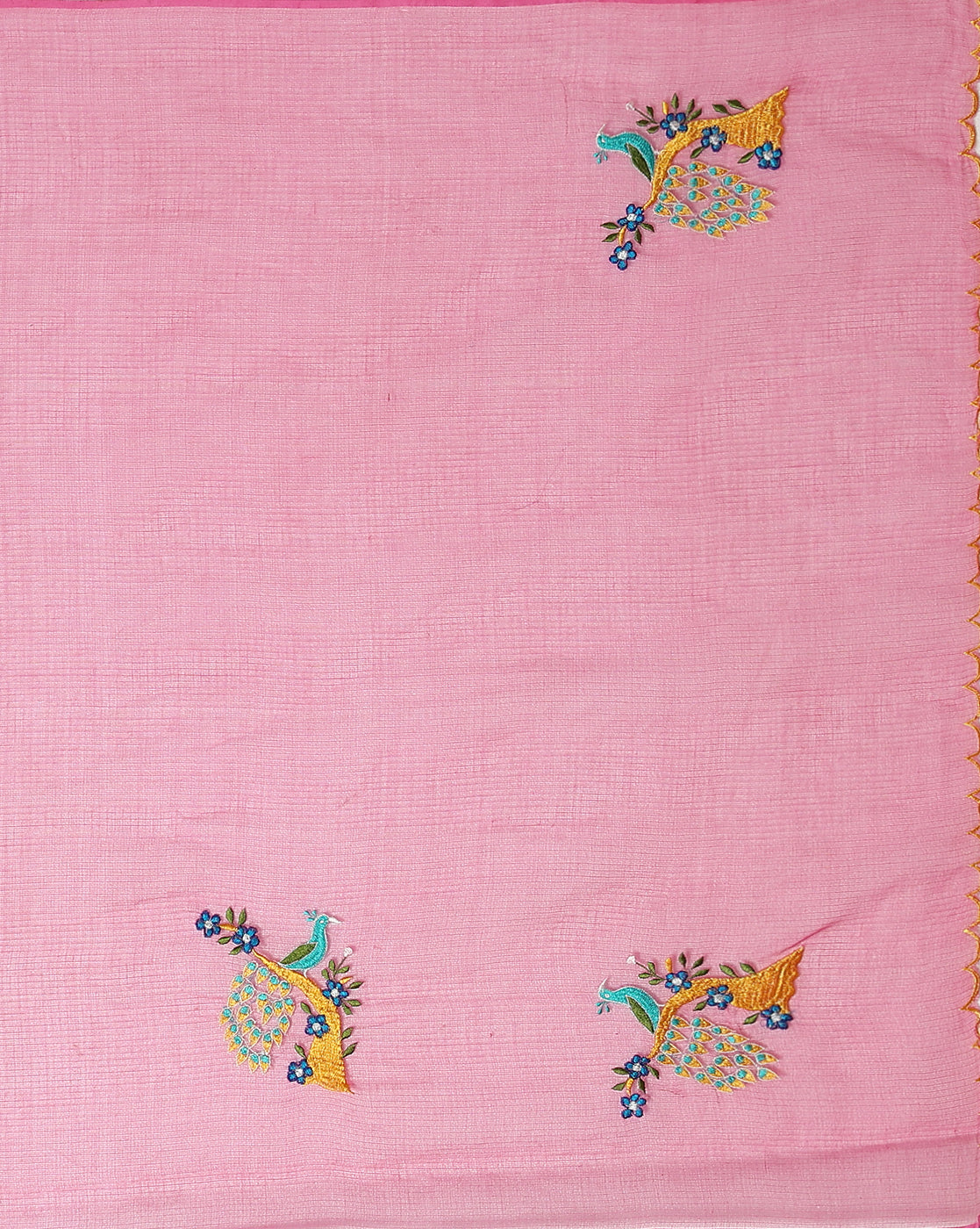 Brilliant Rose Pink Pure Kota Doria Saree Embroidered