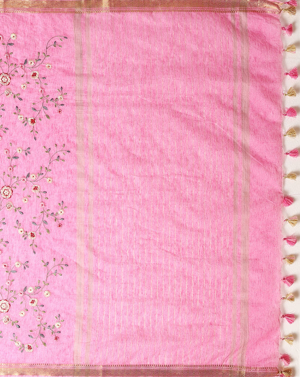 Silk Linen Embroidered Handloom Saree,