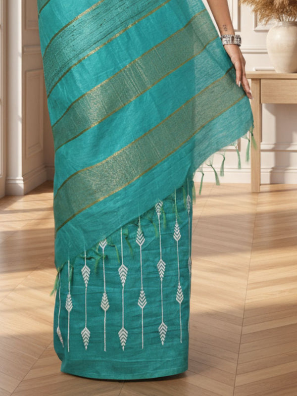 2. Embroidery Details: What type of embroidery is featured on the saree?